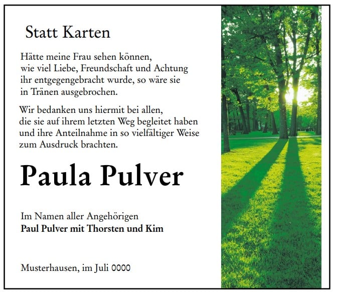 Individuelle Traueranzeigen