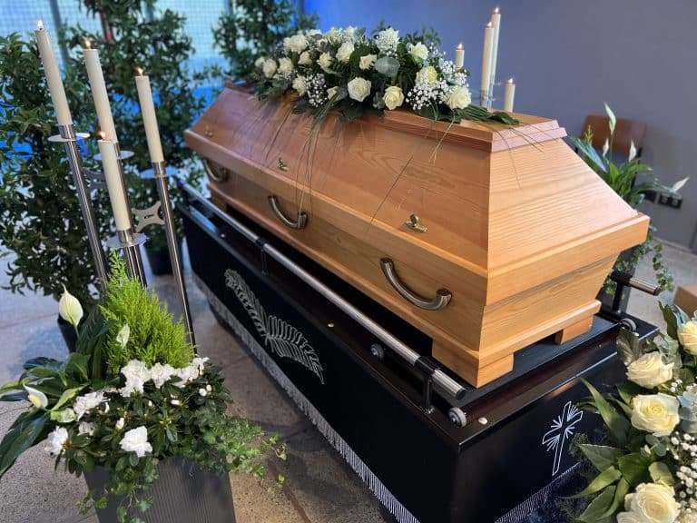 Wir als Bestatter stimmen die Abholung des Verstorbenen mit dem Pflegepersonal ab. Entweder erfolgt die Einbettung am Todestag oder am darauffolgenden Werktag. Anschließend erfolgt die Überführung zu unserem Haus oder der örtlichen Friedhofshalle, sodass eine Abschiedsnahme im Kreise der Familie und Freunden jederzeit möglich ist