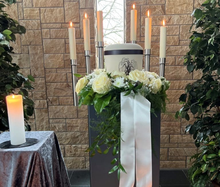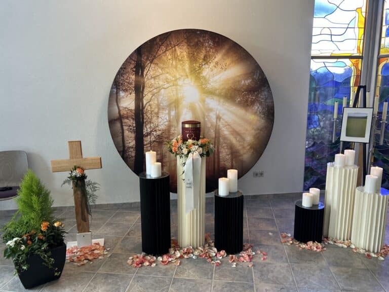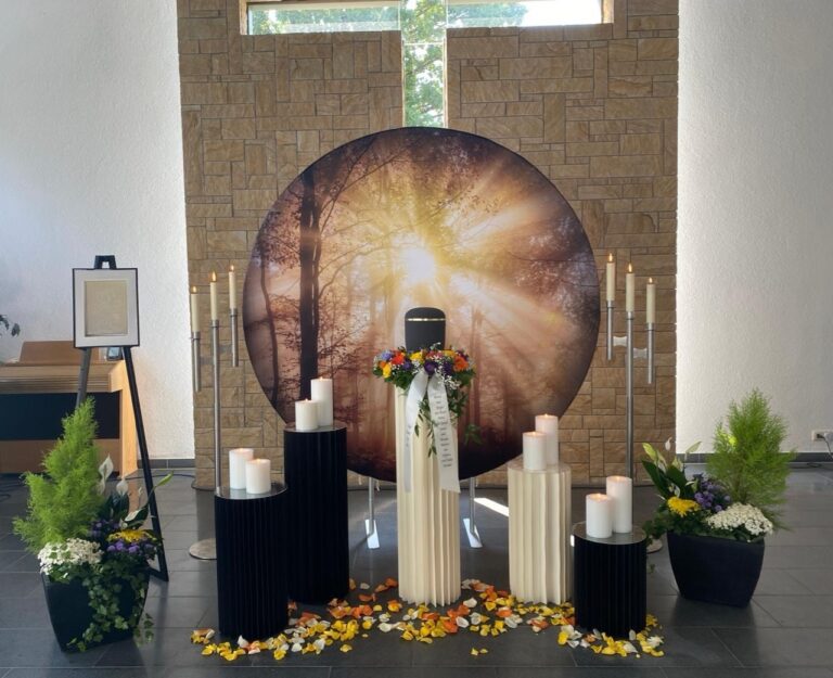Was unsere Trauerfeier besonders macht, sind die individuellen Gestaltungsmöglichkeiten, die wir anbieten. Von der Auswahl eines persönlichen Rahmens bis hin zur musikalischen Untermalung – alles kann auf die Wünsche der Hinterbliebenen abgestimmt werden. Wir sorgen dafür, dass jede Facette der Lebensfeier mit Sorgfalt geplant und durchgeführt wird. Wir bieten Ihnen die Freiheit, kreativ zu sein und den Abschied so einzigartig zu gestalten wie das Leben Ihres geliebten Menschen.
